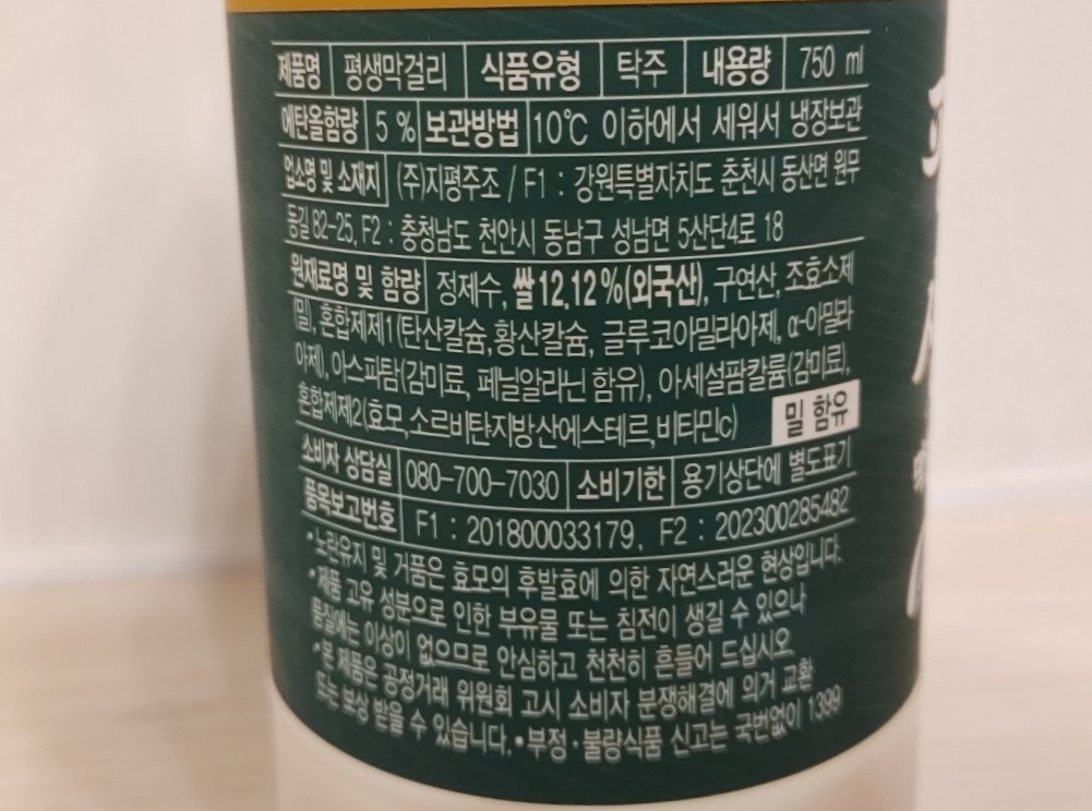 | 製品名 | 平生マッコリ/평생막걸리 |