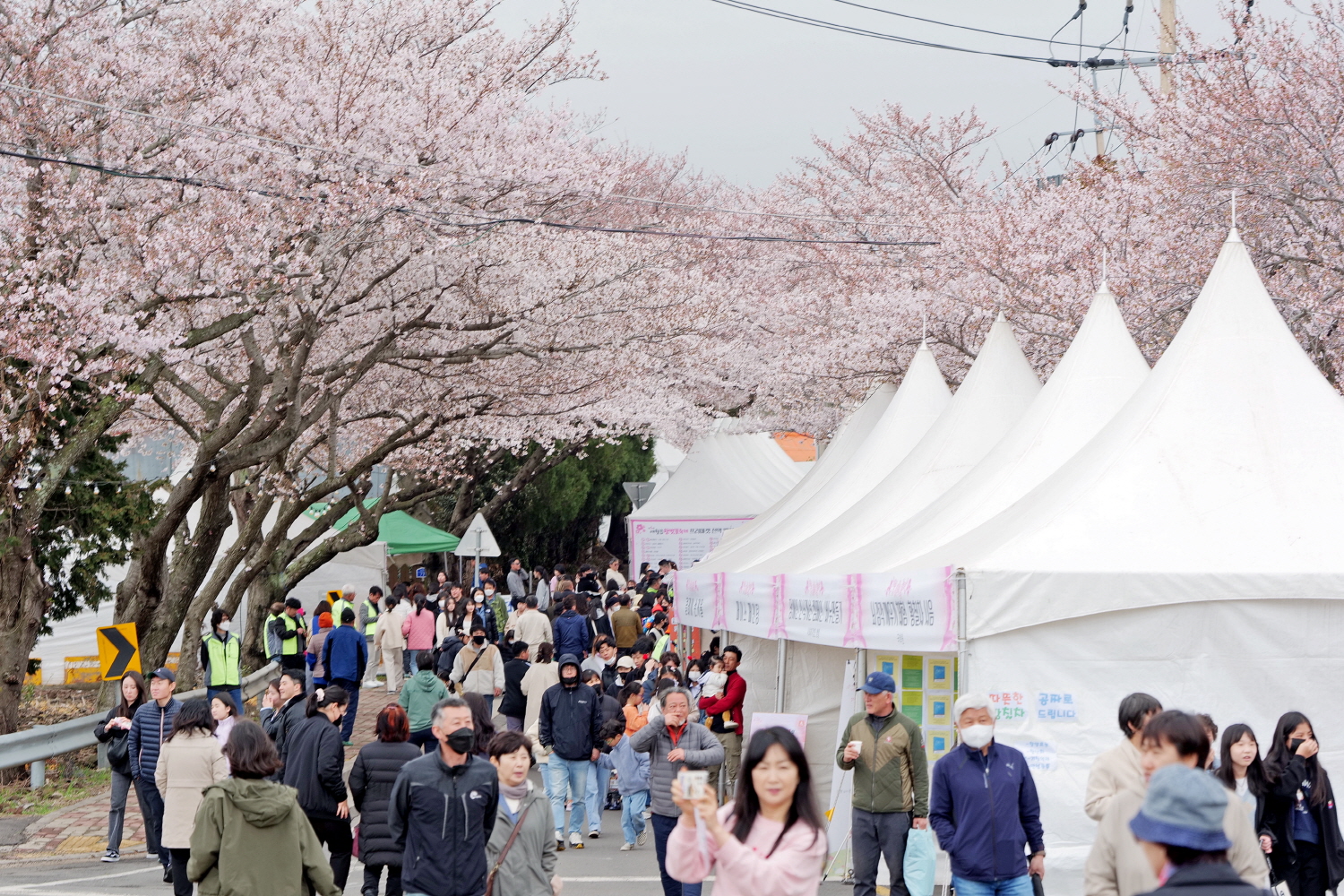 期間中は歩行者天国になり、夜にはライトアップされた幻想的な夜桜も楽しめ、地元の人や観光客でにぎわう済州の春を代表するイベントです。